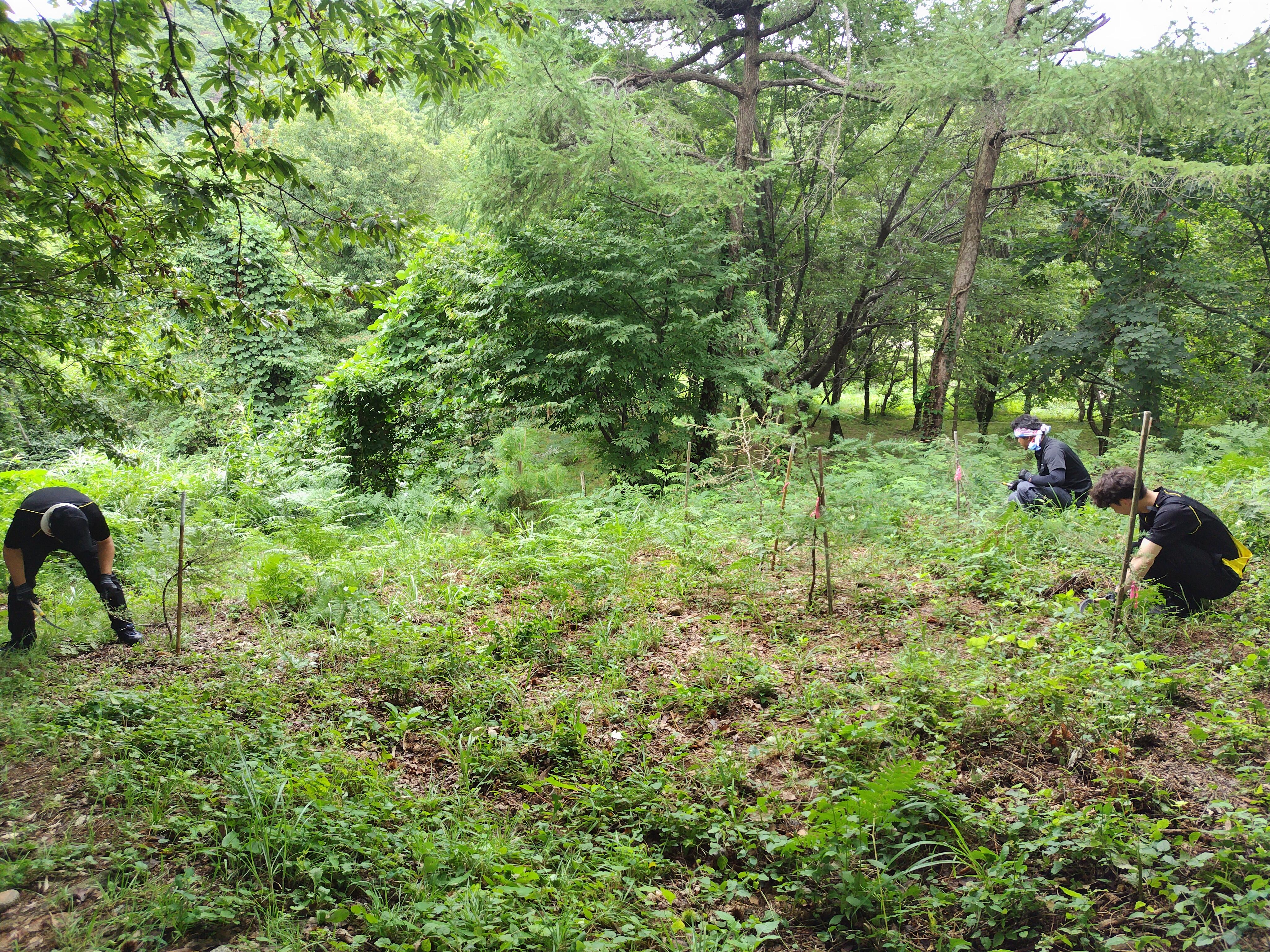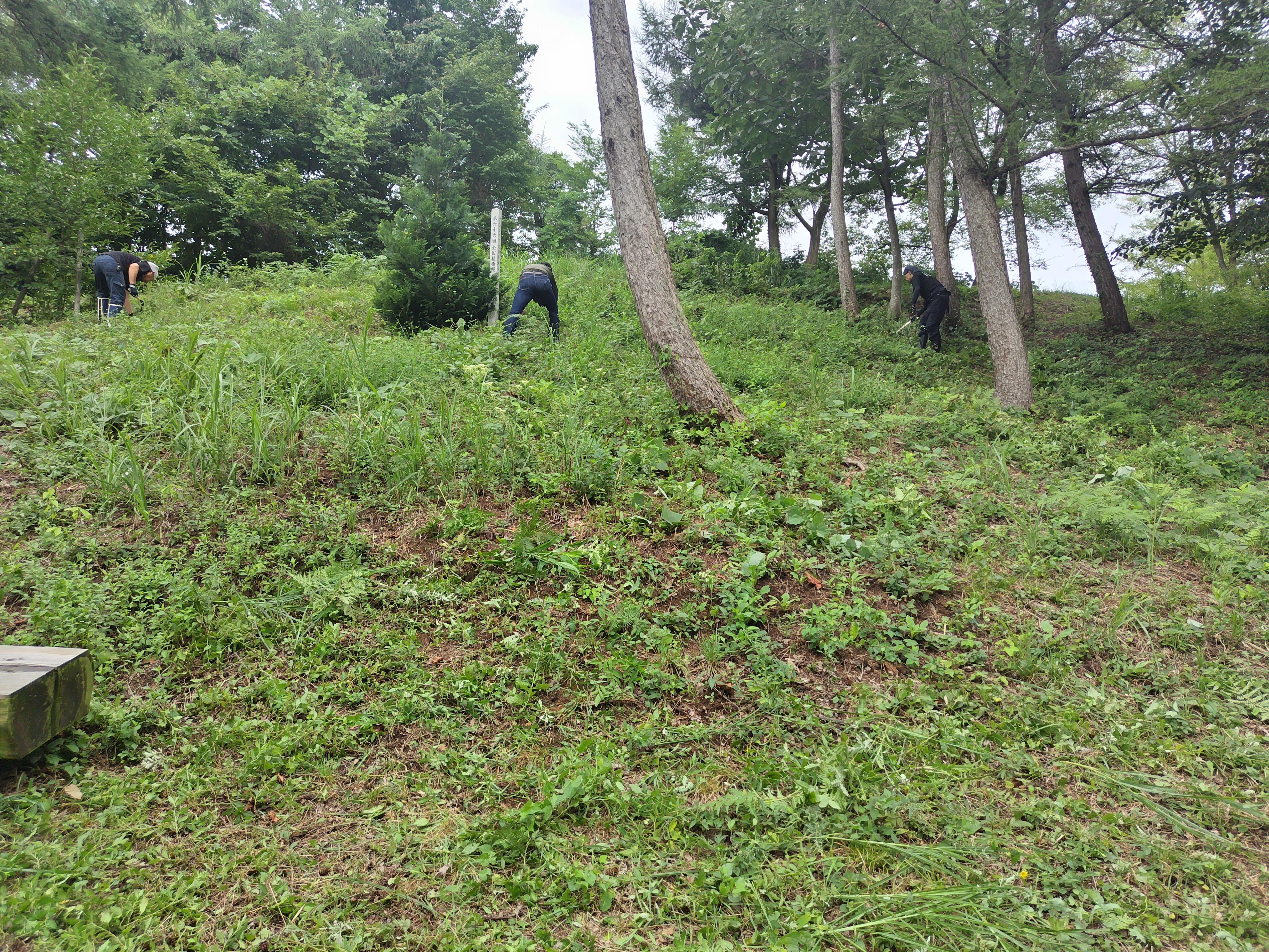 カラマツ苗の植栽地2箇所の草刈りと支柱やヒモのメンテナンスも行いました。