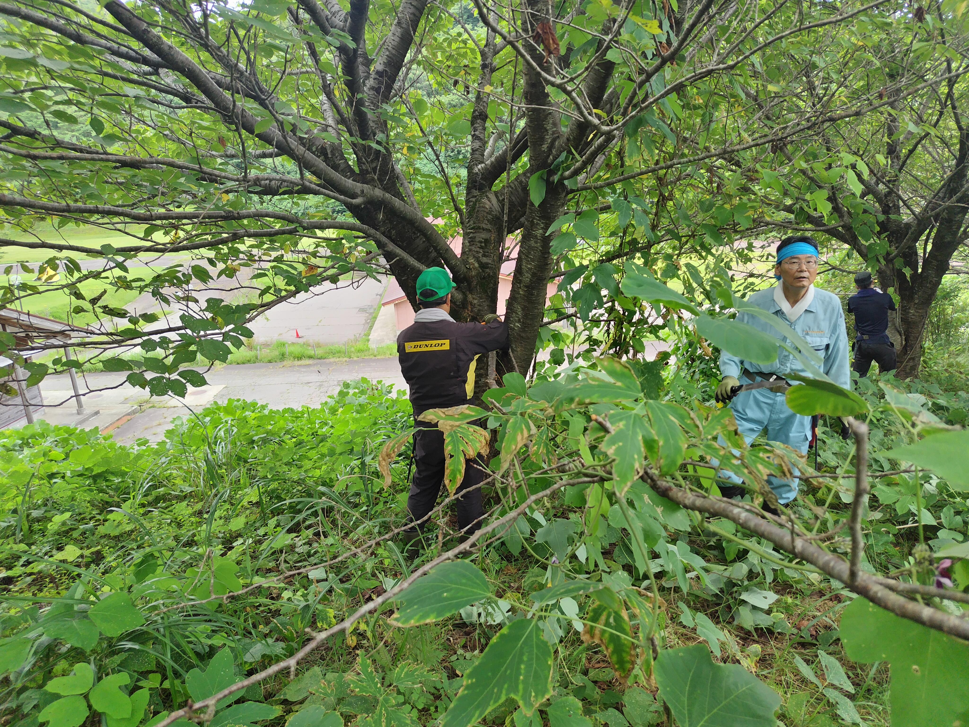 ダンロップタイヤ北陸カンパニー社員、家族30名がキゴ山ダンロップの森に集合し森づくり活動を行いました。