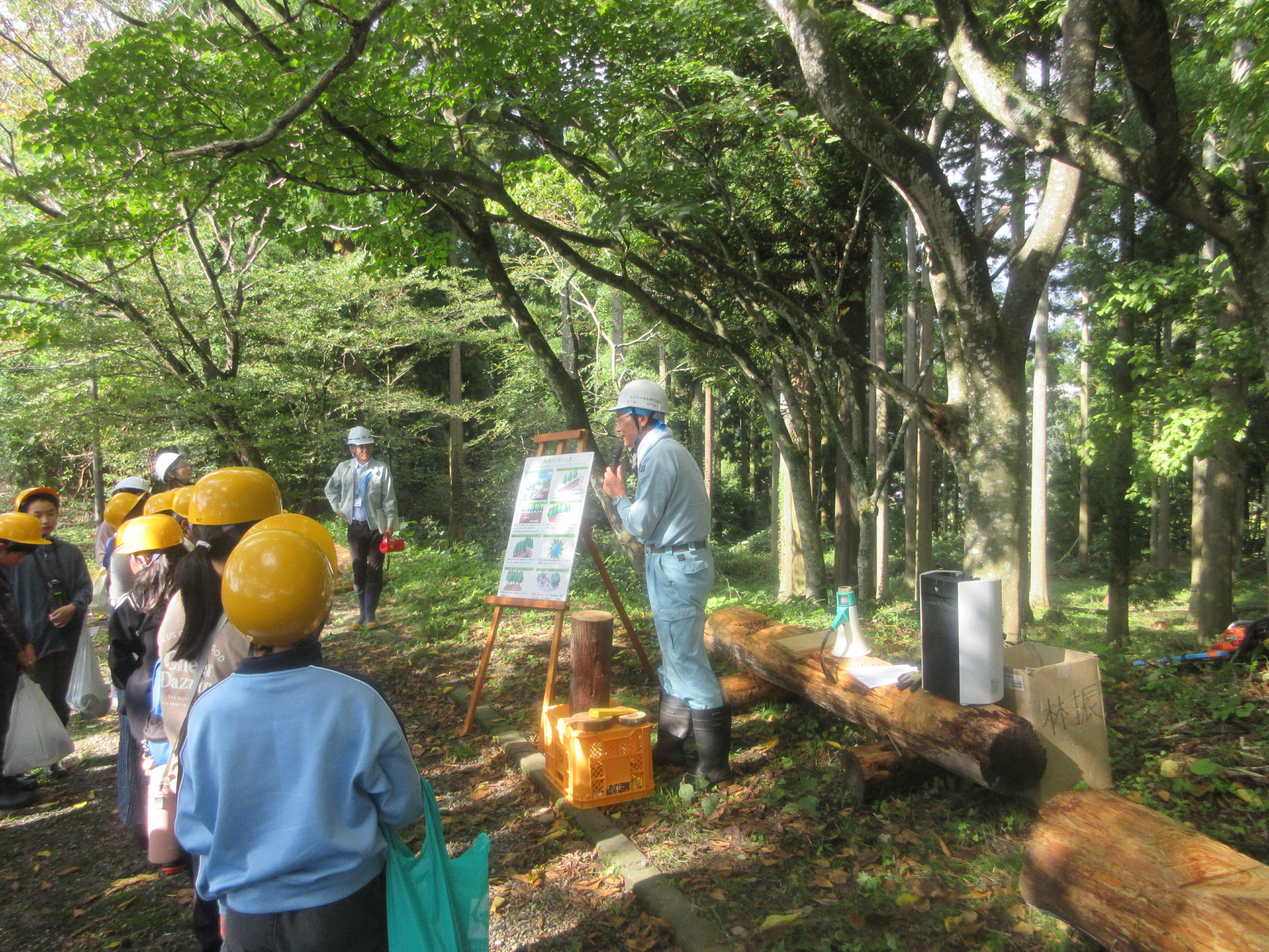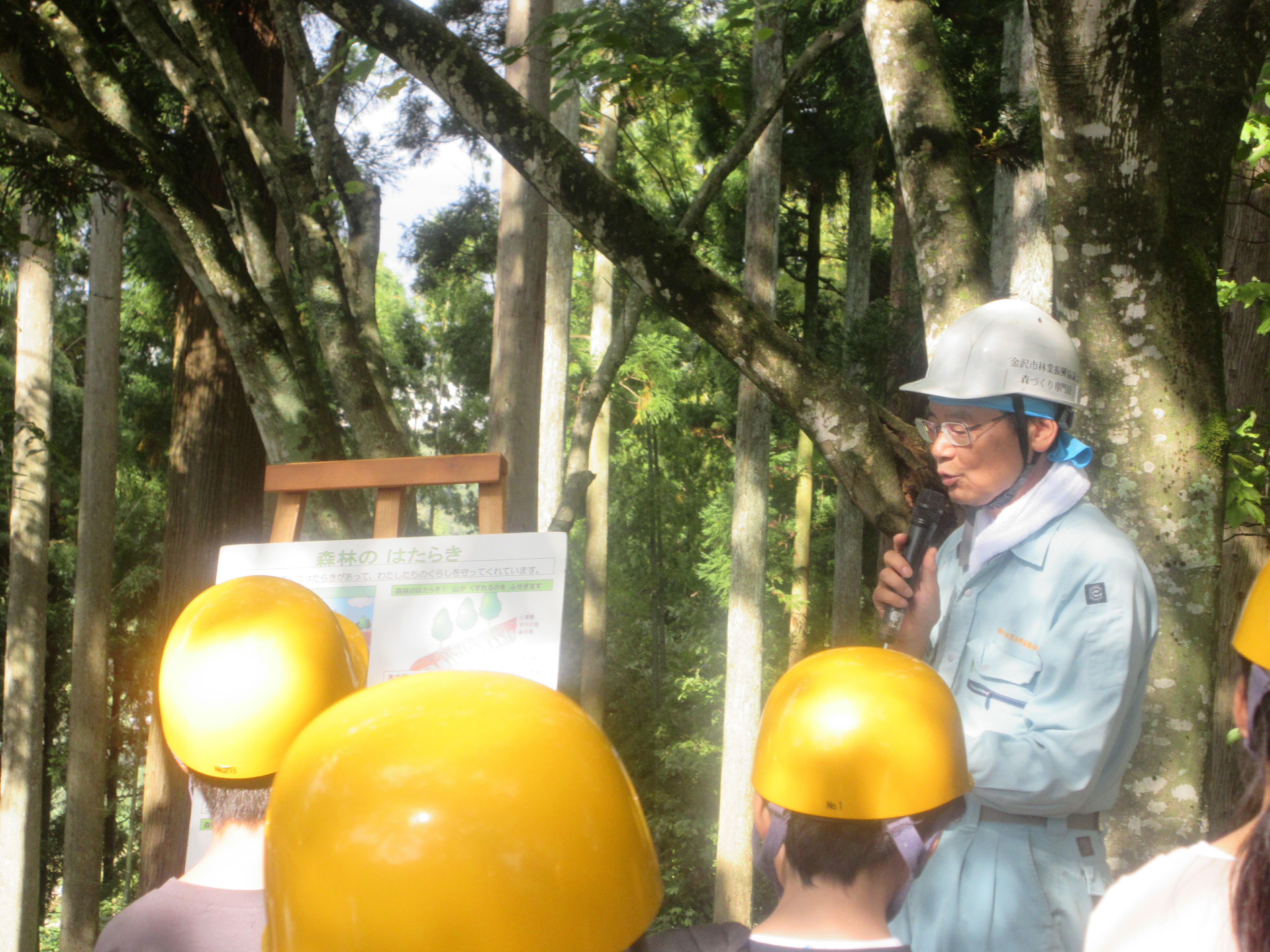 テクノパークの森にバスで来てもらい森のはたらきや雰囲気を感じてもらいました。