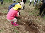活動場所の堅田城址は森に侵入した竹を伐採整備し、現地で畑を作りコナラなどのドングリを育て植林をしました。頂上の広場は灌木を伐り見晴らし台として整備を行い、河北潟や北陸道など周辺を遠望する事が出来、往時の山城としての歴史も感じられるようになりました。作業後の森林レクレーションでは親子で現地の木でおもちゃを作ってもらったり、地元の不動寺小学校では森林散策を行ったりと森の授業に利用されています。