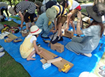 夏休みに市内親子を対象とした木工手作りイベント「ウッディアート」を開催しています。ただ工作をするだけでなく、木を使う事で森が元気になり地球環境を守る事になる事などを知ってもらう時間を取り、親子で協力して作品を仕上げてもらいます。桐のオルゴールやスギの写真立て、時計などにドングリや小枝、松ぼっくりなどの自然素材で飾り付けを行い、オリジナルの作品が出来上がります。